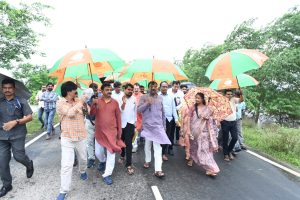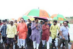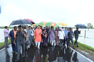 भर पावसात पालकमंत्री पूरपीडितांच्या भेटीला !