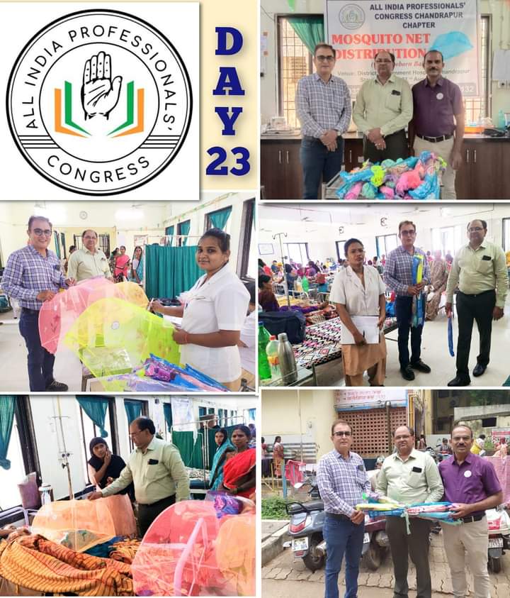 AIPC Chandrapur द्वारा संपूर्ण माह चलने वाले “नवजात शिशु हेतु मच्छरदानी वितरन” (23rd Day) कार्यक्रम में ओबीसी सेल,चंद्रपुर जिला कांग्रेस कमिटी के प्रा. नरेंद्र बोबडे सर के हस्ते मच्छरदानी वितरण हुआ। AIPC Chandrapur के सदस्य भी कार्यक्रम में शामिल हुए।