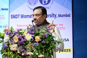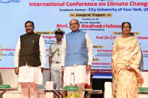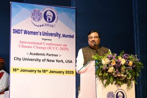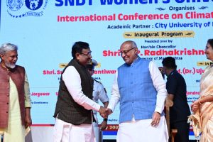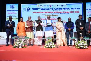 एसएनडीटी महिला विद्यापीठातर्फे आयोजित ‘इंटरनॅशनल कॉन्फरन्स ऑन क्लायमेट चेंज-2025’चे गुरुवारी (दि. १६ जानेवारी २०२५) महामहीम राज्यपाल यांच्या हस्ते उद्घाटन झाले. त्यावेळी ते बोलत होते. या तीन दिवसीय संमेलनाला राज्याचे माजी वने, सांस्कृतिक कार्य व मत्स्यव्यवसाय मंत्री आमदार श्री. सुधीर मुनगंटीवार यांची प्रमुख उपस्थिती होती. तसेच एसएनडीटीच्या कुलगुरू डॉक्टर उज्वला चक्रदेव,आमदार देवराव भोंगळे, जलपुरुष राजेंद्रसिंह, एसएनडीटीचे विलास नानीवाडेकर, युएसचे कॉन्सिलेट जनरल सलील कादेर, कुणी युनिव्हर्सिटी न्यूयॉर्कचे प्राध्यापक नील फिलिप, प्रभारी जिल्हाधिकारी विवेक जॉन्सन, एसएनडीटी बल्लारपूर कॅम्पस संचालक राजेश इंगोले, मनपा आयुक्त विपिन पालीवाल, गोंडवानाचे कुलगुरू डॉ प्रशांत बोकारे आदींची यावेळी उपस्थिती होती.