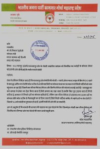कोयला राज्यमंत्री से भाजपा कामगार मोर्चा प्रदेश महासचिव अजय दुबे की मांग