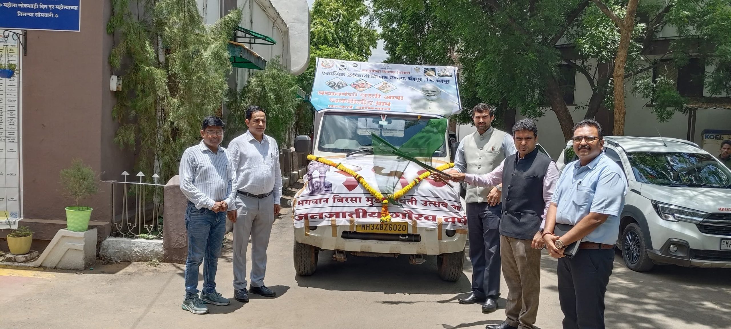 चंद्रपूर( जीमाका) : भगवान बिरसा मुंडा यांच्या 150 व्या जयंतीचे औचित्य साधून जनजातीय गौरव वर्षानिमित्त केंद्र सरकारने आदिवासी समुदायांना सक्षम करण्यासाठी दोन महत्त्वपूर्ण आणि कालबध्द कार्यक्रम हाती घेतले आहेत. यात एकत्रित प्रयत्नांचा भाग म्हणून ‘धरती आबा अभियान – एक केंद्रित जागरूकता आणि संपृक्तता मोहीम’ तसेच ‘धरती आबा कर्मयोगी – एक क्षमता बांधणी कार्यक्रम’ या दोन अभियानाद्वारे लक्ष्यित बहुक्षेत्रीय सेवा वितरणासाठी एक मोठी मोहीम आखलेली आहे. आदिवासी भागांमध्ये पायाभूत सुविधांची परिपूर्णता सुनिश्चित करणे या उपक्रमांचा उद्देश आहे. या अभियानाचा शुभारंभ जिल्हाधिकारी विनय गौडा जी.सी. यांच्या हस्ते हिरवी झेंडी दाखवून दिनांक:17/06/2025 रोजी करण्यात आला.