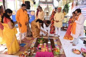 कार्यक्रम की शुरुआत में अतिथियों का स्वागत गायत्री परिवार की परंपरा अनुसार मंत्र दुपट्टा, रुद्राक्ष माला और पूज्य गुरुदेव के युग साहित्य प्रदान कर किया गया। भूमिपूजन के दौरान श्रद्धालुओं ने ‘एक ईंट गुरुदेव एवं माताजी  के नाम’ का संकल्प लेकर पूरी श्रद्धा के साथ पूजन में ईंटें अर्पित कीं।