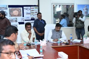 आ. मुनगंटीवार यांनी एसएनडीटी विद्यापीठाच्या उपकेंद्रातील विविध बांधकामांचा आढावा घेत प्रगती समाधानकारक असल्याचे नमूद केले आणि सर्व कामे निर्धारित वेळेत पूर्ण करण्याचे स्पष्ट निर्देश दिले. मुख्य इमारतीचे बांधकाम जूनपर्यंत पूर्ण करण्याचे नियोजन असून, 100 केएलडी क्षमतेच्या सिवेज ट्रीटमेंट प्लांटचे काम 30 जूनपर्यंत पूर्ण करण्यास आ. मुनगंटीवार यांनी सांगितले. गेस्ट हाऊस बिल्डिंग क्रमांक-2 चे बांधकाम 30 मेपर्यंत, इनडोअर स्पोर्ट्स बिल्डिंगचे काम 30 जुलैपर्यंत आणि 2 बीएचके क्वार्टर इमारतीचे काम 30 एप्रिलपर्यंत पूर्ण करण्याचे उद्दिष्ट ठेवण्यात आले आहे. तसेच क्वार्टरमध्ये योग्य व्यवस्था करण्यावरही त्यांनी विशेष भर दिला.
