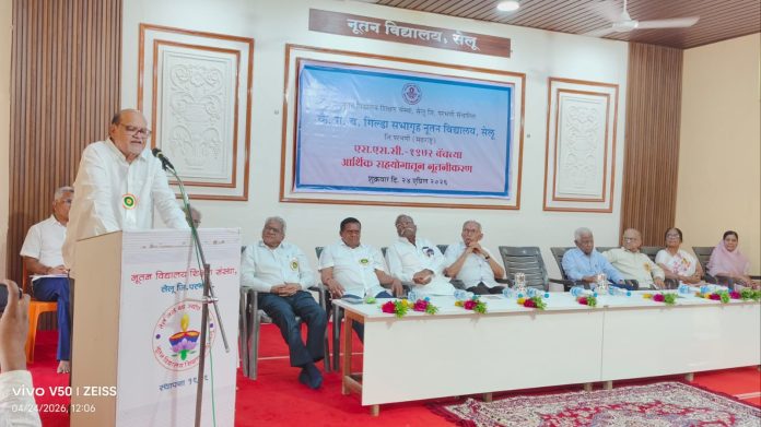ज्योत्स्ना वानखेडे: सेलू येथील नूतन विद्यालयातून १९७२ ला दहावी उत्तीर्ण झालेल्या माजी विद्यार्थ्यांच्या आर्थिक योगदान,सामुहिक गुरू दक्षिणेतून नूतन विद्यालय शिक्षण संस्थेच्या पुढाकारातून नूतनीकरण झालेल्या कै.रा.ब. गिल्डा सभागृहाचे उद्घाटन शुक्रवार (दि.२४) रोजी १९७२ चे माजी विद्यार्थी माजी नगराध्यक्ष हेमंतराव आडळकर, श्याम मणियार,उद्योजक रामप्रसाद घोडके,प्रा.भगवान टेकाळे, डॉ. सुभाष परतानी, शेतीनिष्ठ शेतकरी पांडुरंग मगर, शरयू मुळावेकर यांच्या हस्ते उद्घाटन झाले. कार्यक्रमाच्या अध्यक्षस्थानी नूतन विद्यालय शिक्षण संस्थेचे अध्यक्ष डॉ.एस.एम.लोया हे होते. तर व्यासपीठावर सचिव प्राचार्य डॉ.विनायकराव कोठेकर, महिला मंडळाच्या सचिव ललिता गिल्डा यांची उपस्थिती होती. नूतन विद्यालयाच्या कै.रा.ब.गिल्डा सभागृहाचा नूतनीकरण उद्घाटन सोहळा उत्साहात संपन्न झाला. प्रास्ताविक सहसचिव जयप्रकाश बिहाणी यांनी केले. सुत्रसंचलन अशोक लिंबेकर यांनी केले. तर आभार प्रदर्शन मुख्याध्यापक संतोष पाटील यांनी केले. कार्यक्रम यशस्वीतेसाठी माजी विद्यार्थी,विद्यमान प्रशासकीय अधिकारी प्राचार्य डॉ.शरद कुलकर्णी यांच्या मार्गदर्शनात नूतन विद्यालयातील शिक्षक, शिक्षकेतर कर्मचाऱ्यांनी परिश्रम घेतले.